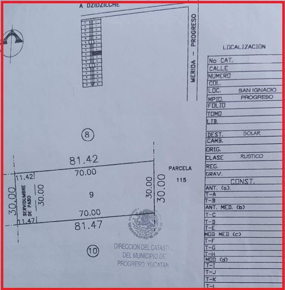 El terreno está ubicado en San Ignacio, Progreso, Yucatán, México